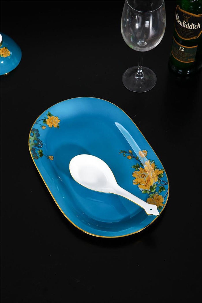 4.5寸碗10個,小湯勺10個,筷子架10個,骨碟10個,湯煲1個,大湯勺1個,菜盤10個,大圓盤1個,魚盤1個,果盤1套,大合器2套,湯盅2套,面碗2個